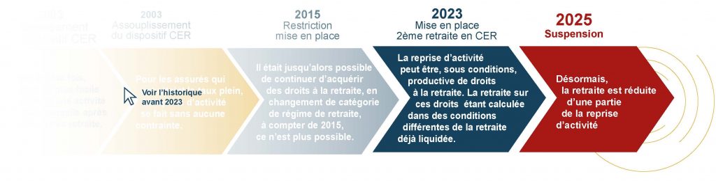 La réforme de 2023 avait fortement amélioré les dispositifs de transition entre vie professionnelle et retraite en faisant évoluer positivement les dispositifs existants :- le Cumul Emploi Retraite (CER) d’une part